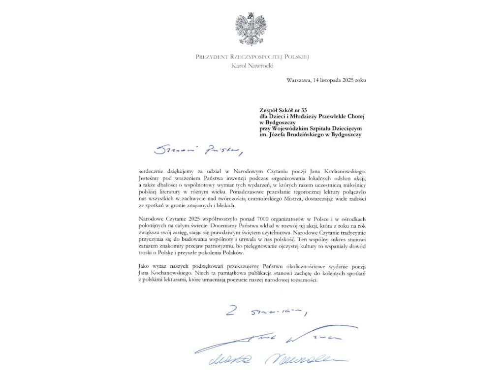 Organem prowadzącym dla Zespołu Szkół nr 33 Specjalnych dla Dzieci i Młodzieży Przewlekle Chorej w Bydgoszczy jest Samorząd Województwa Kujawsko - Pomorskiego.
