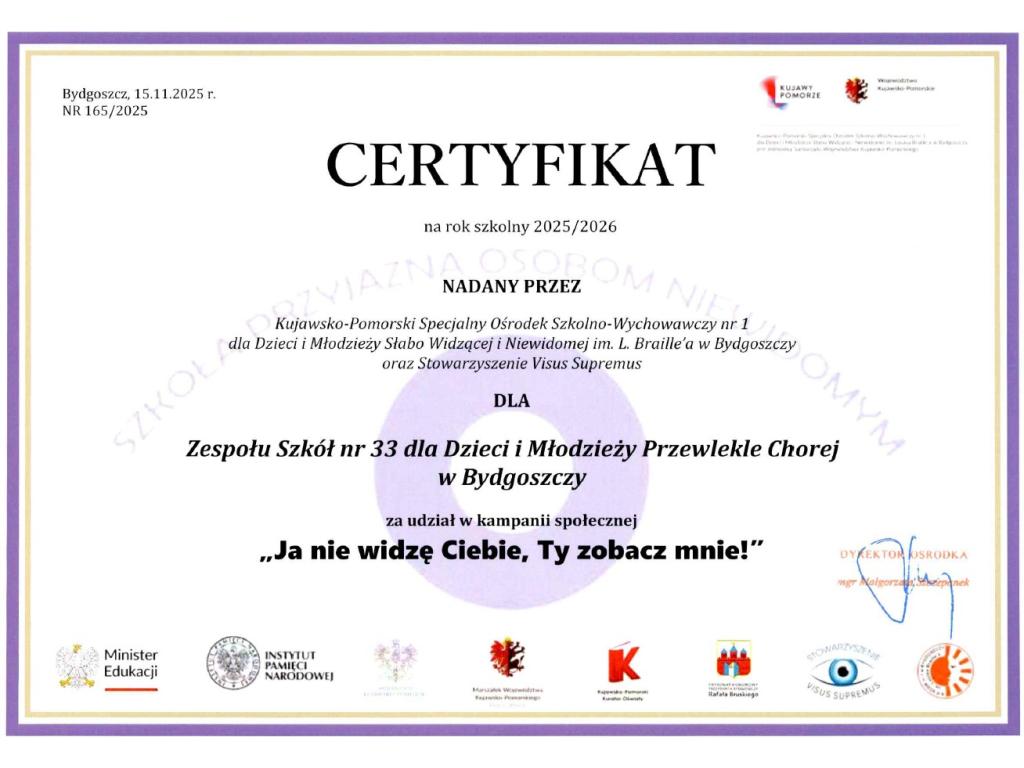 Zaświadczenia i Certyfikaty uzyskane przez szkołę w roku szkolnym 2025/2026